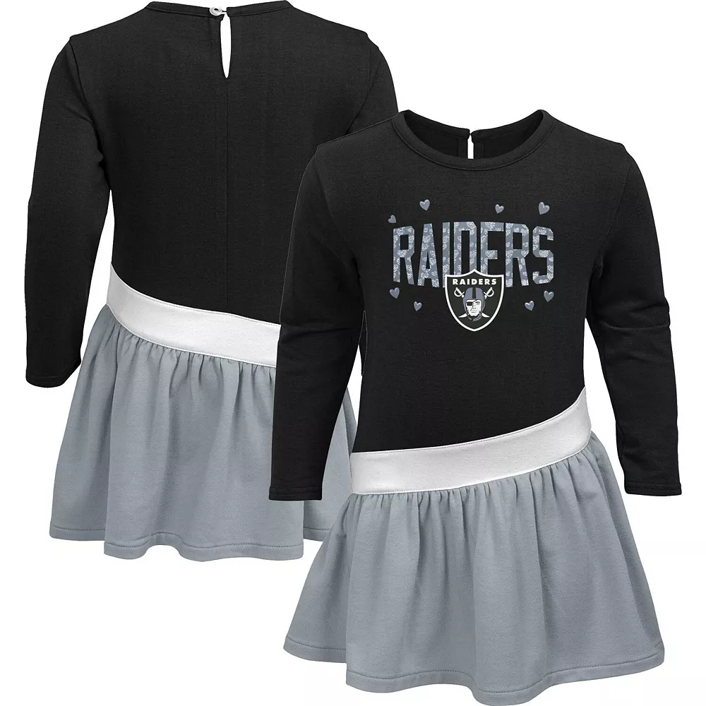 Add to the fun of cheering for the Las Vegas Raiders with this Heart To Heart Jersey Tunic dress. Its multicolor design features authentic Las Vegas Raiders graphics surrounded by matching hearts. The soft material also makes this cute outfit comfortable to wear all day.