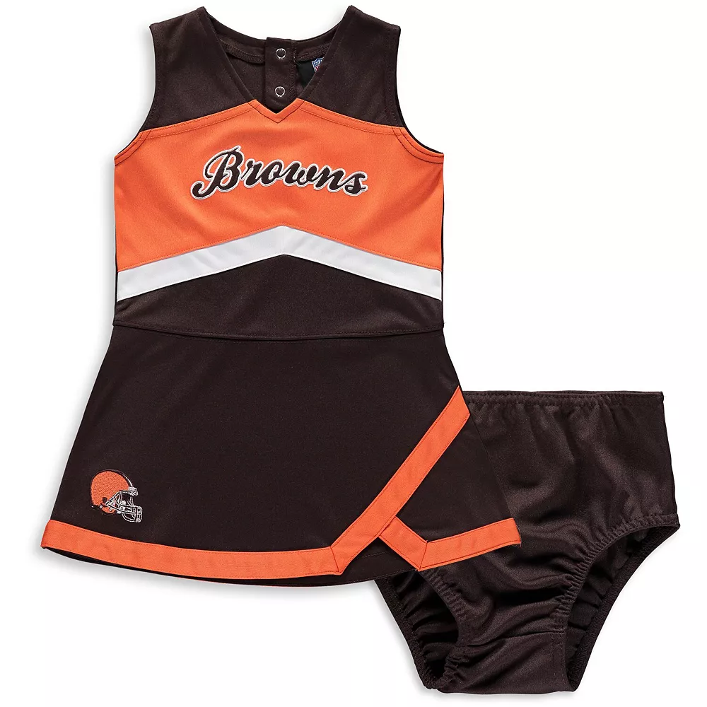 Help your youngster cheer on the Cleveland Browns with this cute Cheer Captain jumper dress.