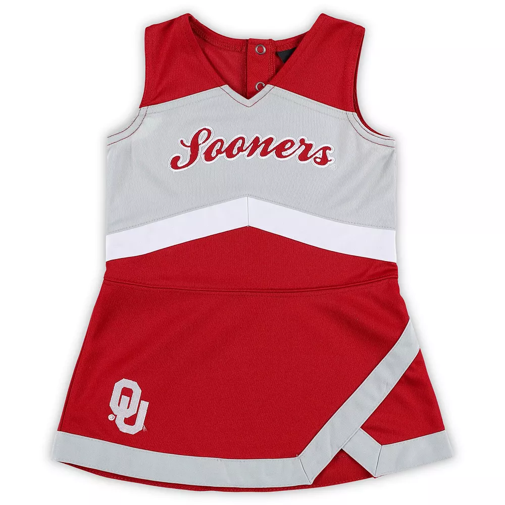 Fire your little one up for game day with this Oklahoma Sooners Jumper set. It features an adorable dress coupled with bloomers for an up-and-coming Oklahoma Sooners cheer captain look. Plus, the sleeveless design promotes a breathable feel for comfort.
