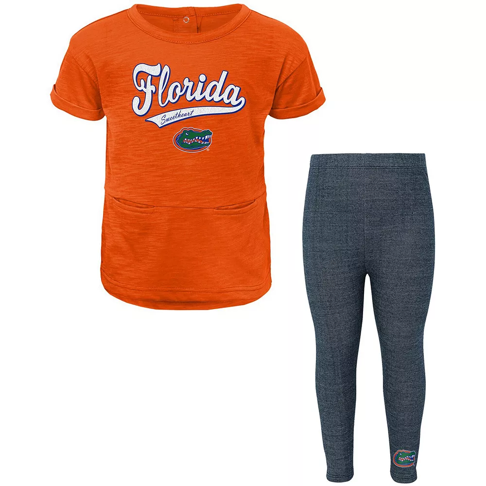 This adorable set is a wonderful way for any growing fan to rep their Florida Gators. The charming, glittered graphics give the top that extra flair that young fans adore, while the bottoms include a subtle team logo for a double dose of Florida Gators pride. Plus, the snap closure at the neck will make dressing super convenient.