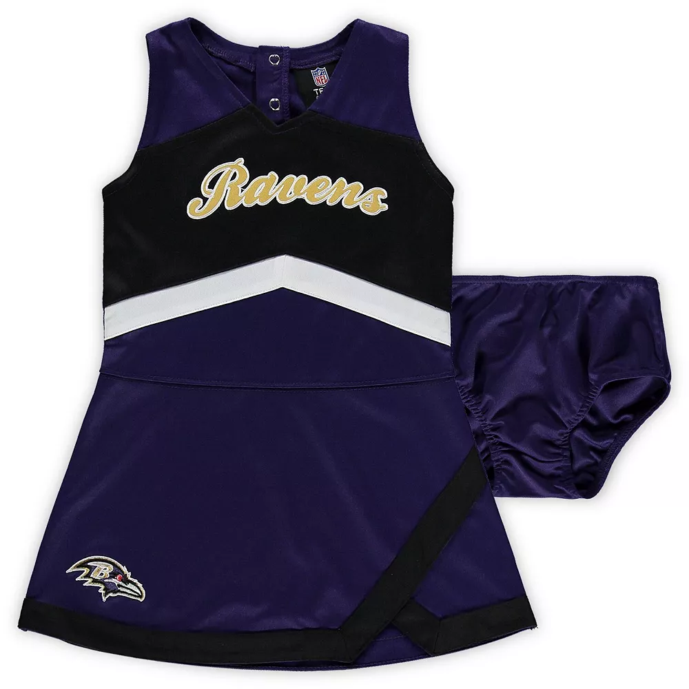 Your youngest fan is on the fast track to becoming the biggest Baltimore Ravens fan. Give them another reason to cheer with this adorable Cheer Captain Jumper dress! The classic Baltimore Ravens graphics will make them feel like they’re always cheering from the sidelines, even if you’re watching the action from home.