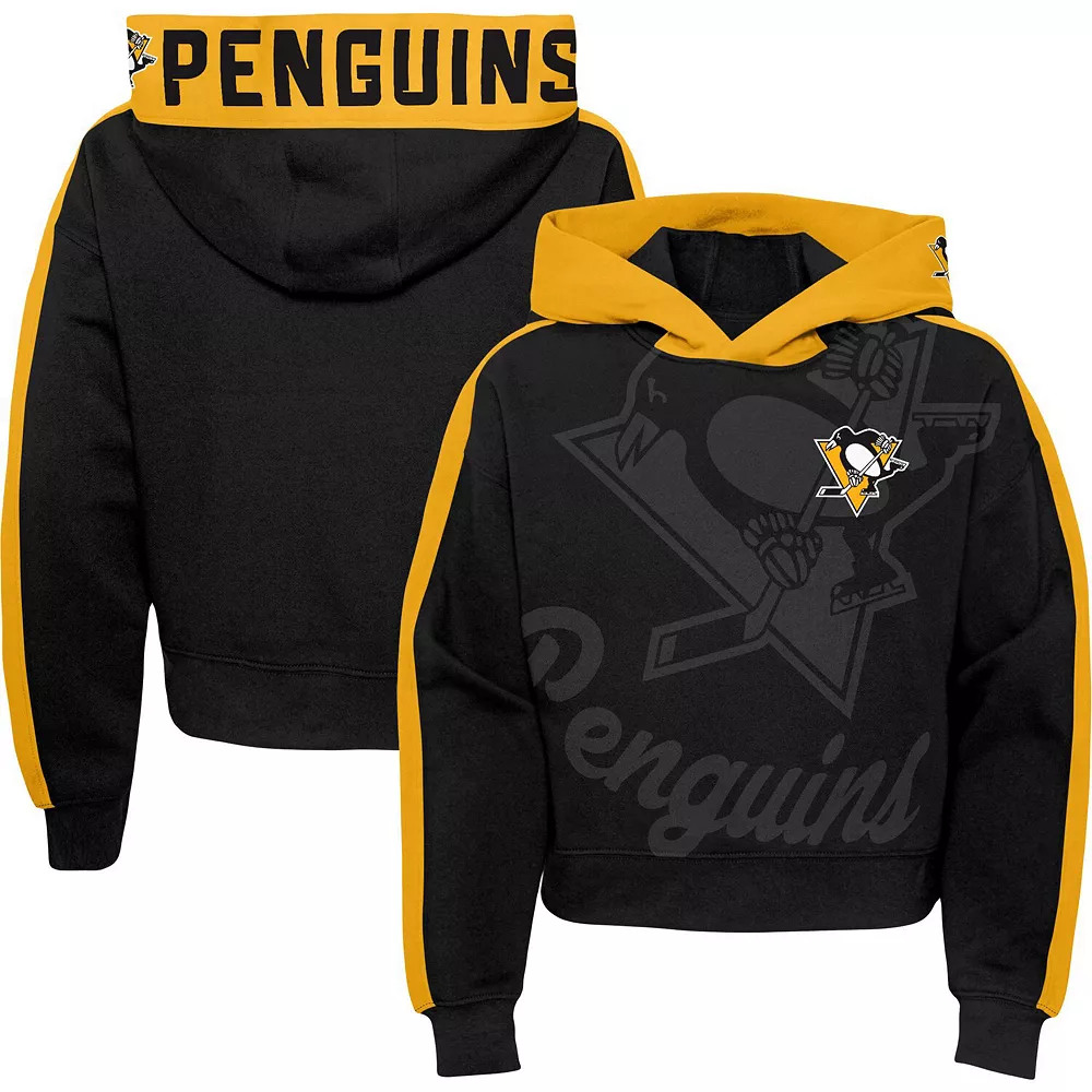 Get your kiddo into the Pittsburgh Penguins spirit with this Record Setter pullover hoodie. Not only is the team’s logo on the chest sitting on top of an exciting sublimated design, but they can find additional team graphics on the hood, meaning their fandom will never be in doubt. Every time your young fan sports this midweight top, they’ll be warm, comfortable and ready to cheer on their favorite Pittsburgh Penguins players.