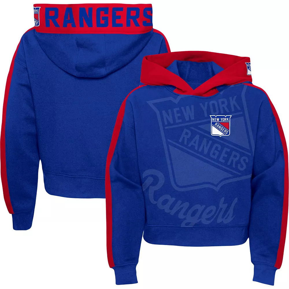 Get your kiddo into the New York Rangers spirit with this Record Setter pullover hoodie. Not only is the team’s logo on the chest sitting on top of an exciting sublimated design, but they can find additional team graphics on the hood, meaning their fandom will never be in doubt. Every time your young fan sports this midweight top, they’ll be warm, comfortable and ready to cheer on their favorite New York Rangers players.