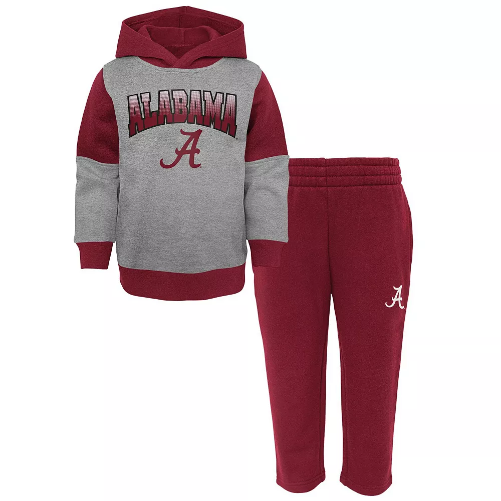 Since your little one is already a huge Alabama Crimson Tide fan, make sure they look the part with this Sideline Hoodie and Pants set. The pair of Alabama Crimson Tide logos and oversized wordmark will leave no doubt which team they’re cheering for. Bundle them up with fandom in this fleece-lined set.