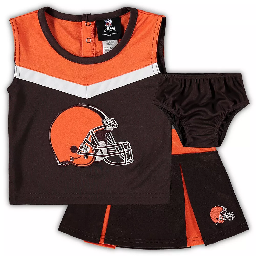Help your little one show off their newfound Cleveland Browns admiration with this Two-Piece Spirit Cheerleader Set with Bloomers. Each piece is crafted from soft yet durable fabric, perfect for your young Cleveland Browns fan to run around in and hype up the crowd, just like a real cheerleader!