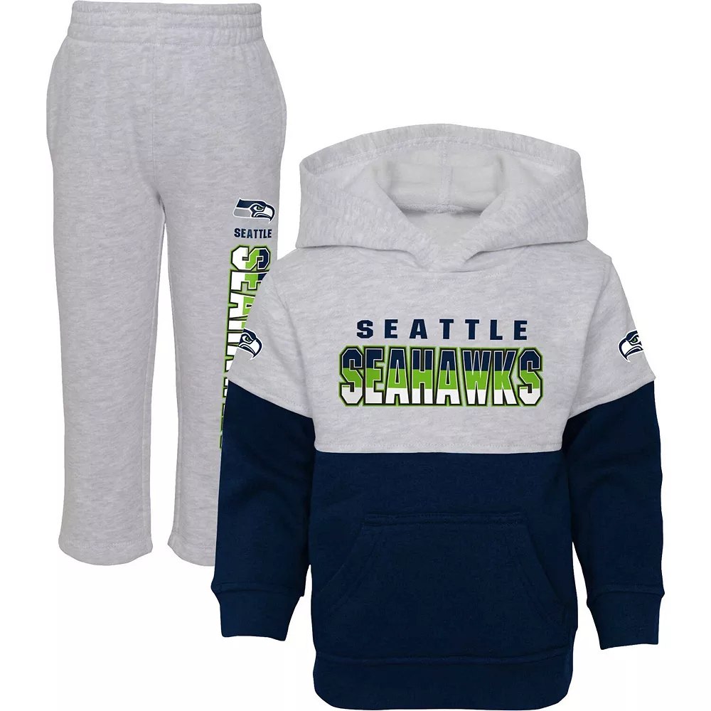 Gear up your youngest Seattle Seahawks fan from top to bottom with this Playmaker set. It features a two-tone hoodie and sweatpants with matching team graphics. The fleece lining provides extra comfort when your youngster is rooting for the Seattle Seahawks on cold game days.