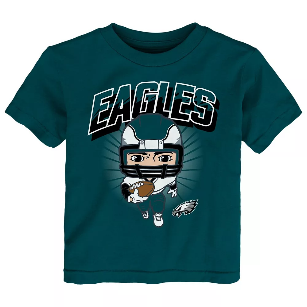 Help your devout Philadelphia Eagles fan gear up for the big game with this Scrappy T-shirt. It features a cute depiction of a receiver charging with a football in hand, symbolizing what they want to see when it’s go time. Pair this bold cotton tee with your youngster’s favorite cap or another Philadelphia Eagles accessory for a bold game-ready look.