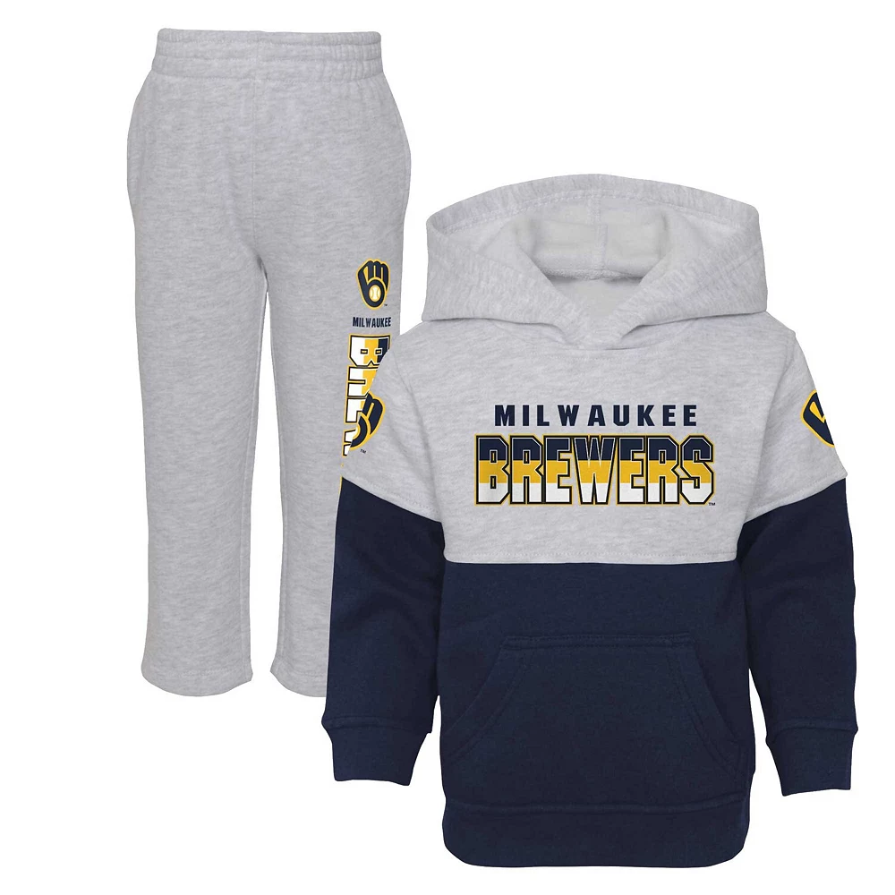 Gear up the newest Milwaukee Brewers fan from top to bottom with this Playmaker set. It features a two-tone hoodie paired with sweatpants, both decorated in eye-catching Milwaukee Brewers graphics. Fleece lining provides extra warmth to the cozy midweight design.