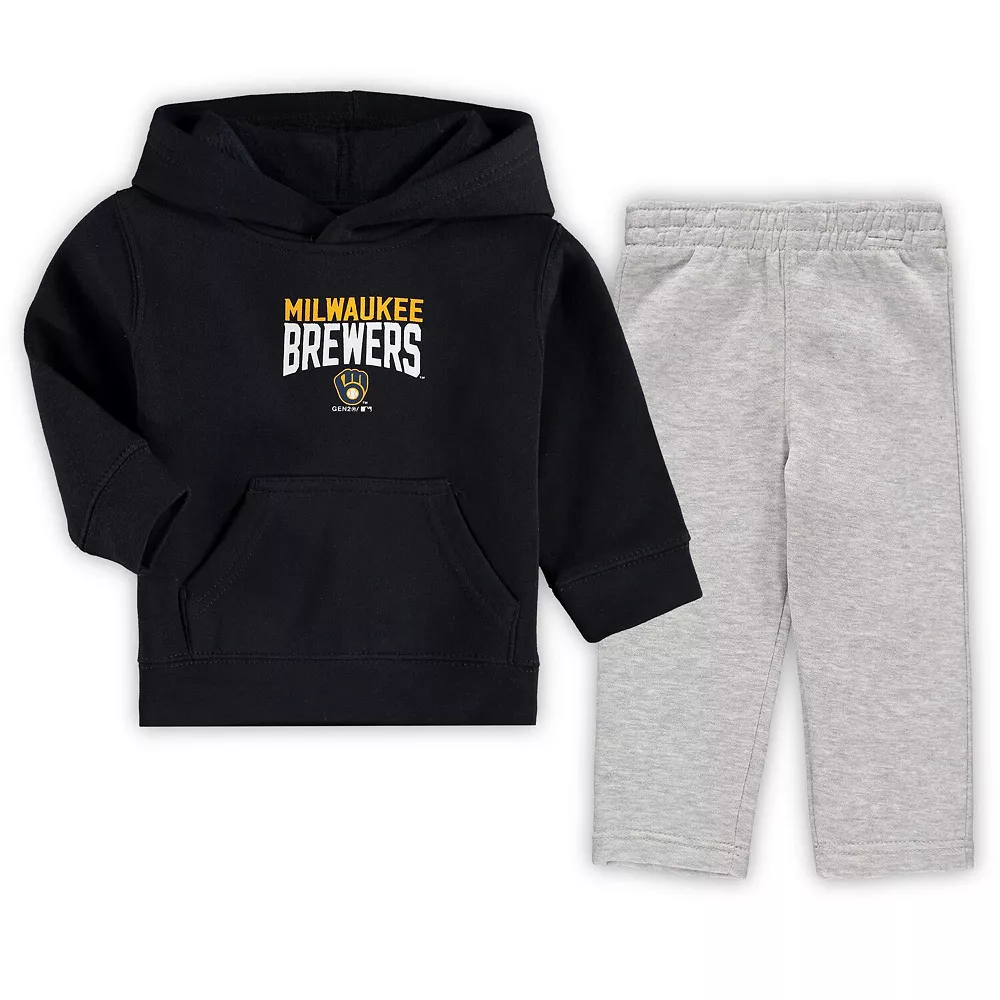 Toddler Navy/Heathered Gray Milwaukee Brewers Fan Flare Fleece Hoodie and Pants Set
