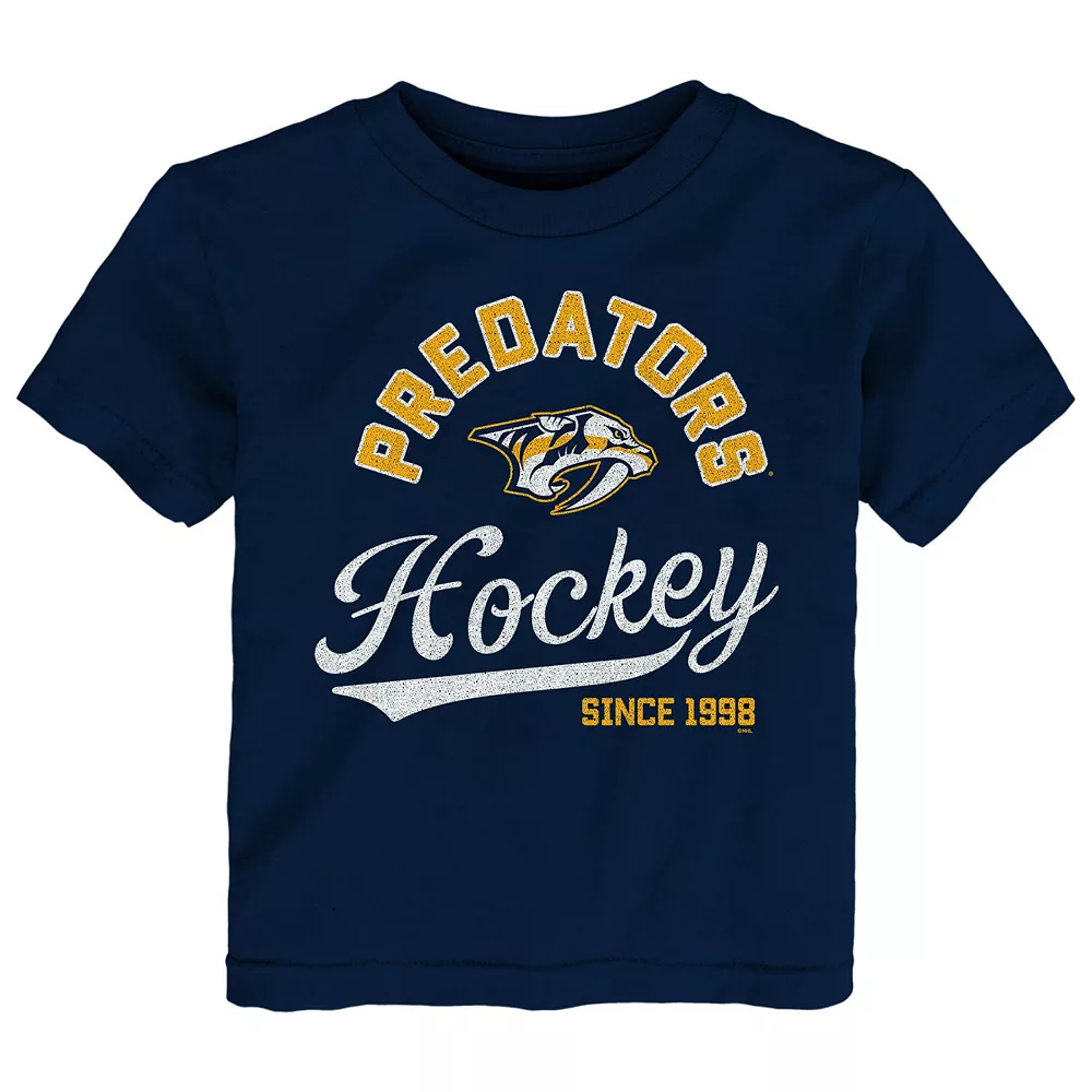 Your little one looks like the ultimate Nashville Predators fan when they sport this Take the Lead T-shirt. It features cool Nashville Predators graphics to spotlight their budding fandom. Plus, the crew neck design and soft fabric promote comfort with each wear.