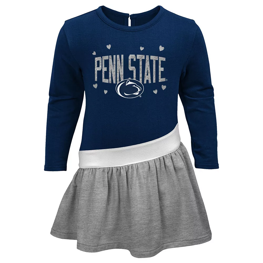 Add to the fun of cheering for the Penn State Nittany Lions with this Heart to Heart dress. Its multicolor design features authentic Penn State Nittany Lions graphics surrounded by matching hearts. The soft French terry fabric also makes this outfit comfortable to wear all day.
