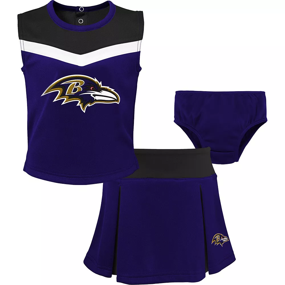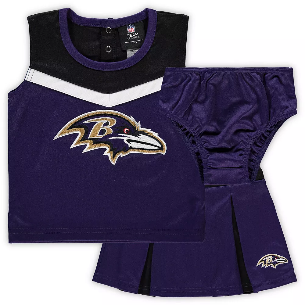 Help your little one show off their newfound Baltimore Ravens admiration with this Two-Piece Spirit Cheerleader Set with Bloomers. Each piece is crafted from soft yet durable fabric, perfect for your young Baltimore Ravens fan to run around in and hype up the crowd, just like a real cheerleader!