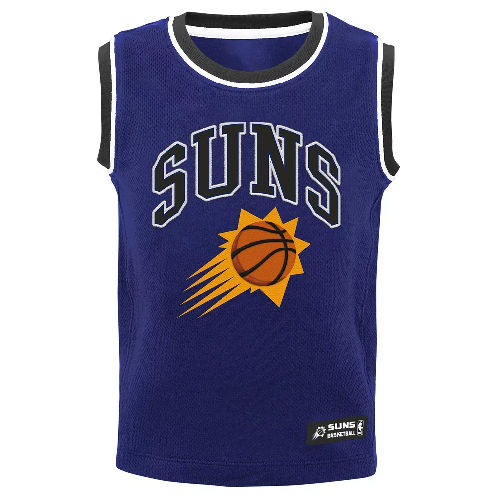 Your little one is ready to sprint onto the court with this bold Phoenix Suns set. It includes a jersey tank top with classic Phoenix Suns graphics and comfy shorts. Both pieces feature mesh fabric, promoting breathability for long-lasting freshness.