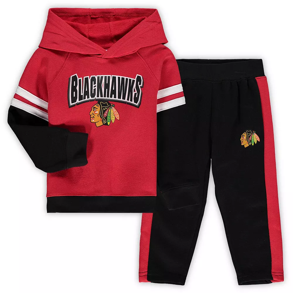 Give your kiddo the perfect, game-ready look that fully showcases their Chicago Blackhawks enthusiasm with this Miracle On Ice Hoodie and Pants set. Both pieces feature crisp Chicago Blackhawks graphics and a team-inspired colorway, so everyone will know which side they’re cheering for. The pullover hoodie is also constructed with raglan sleeves, which provide a more comfortable wear than traditional sleeves.