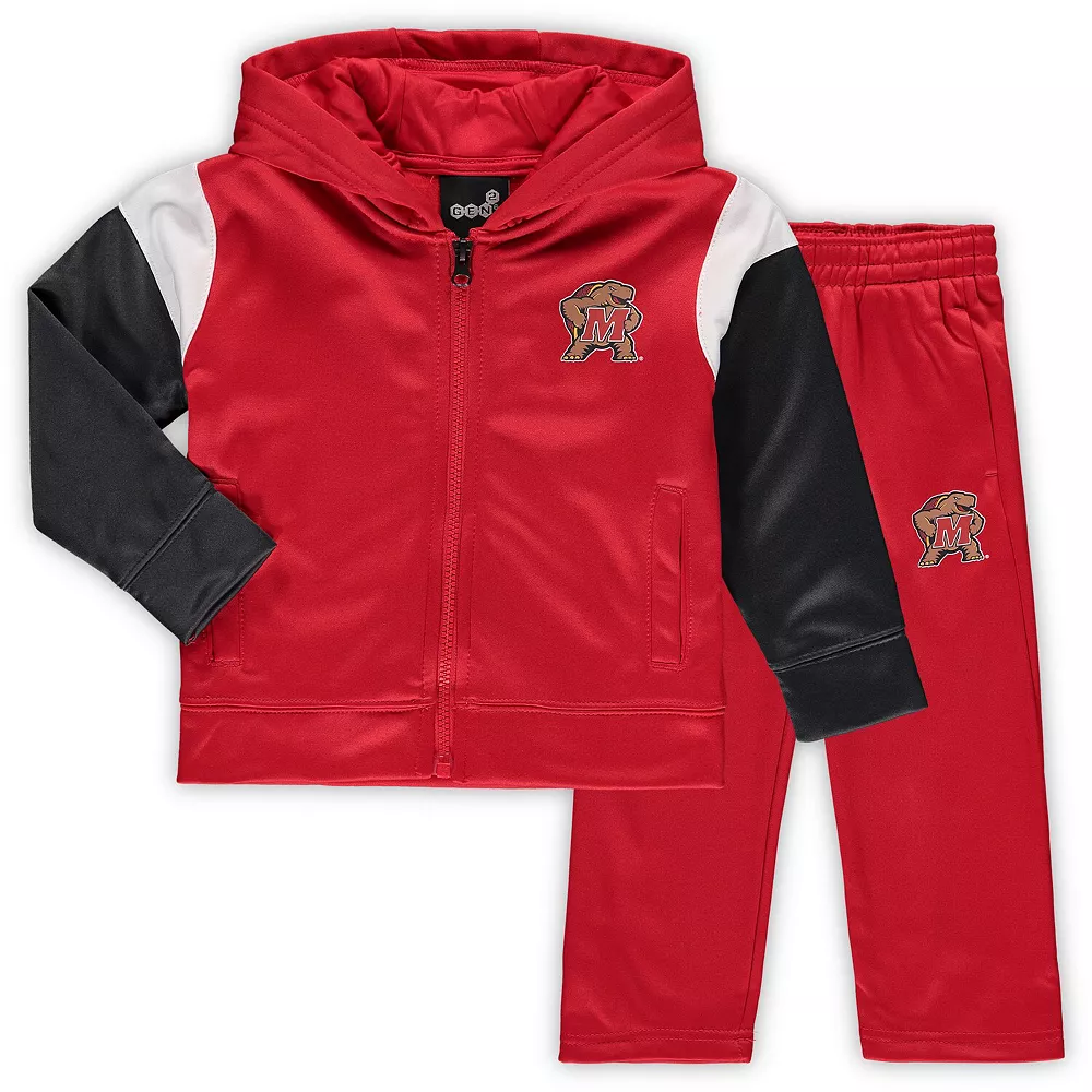 Help your little one layer up in bold Maryland Terrapins fashion with this full-zip hoodie and pants set. The hoodie and bottoms feature complementary colorways and team graphics that make them a great grab for keeping warm. Pair this set on a chillier game day and let your young Maryland Terrapins fan enjoy a double dose of team devotion.