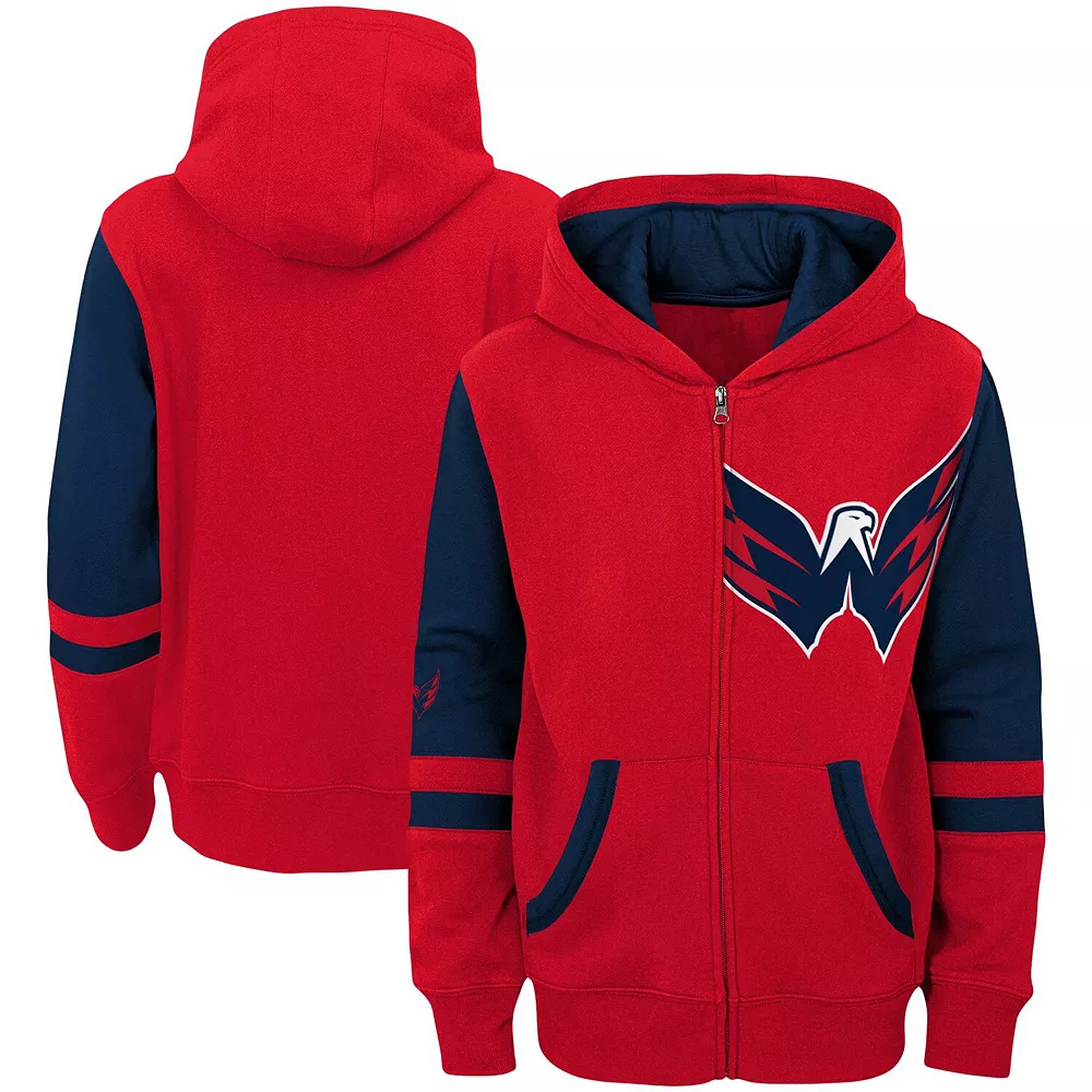 Your young one loves the Washington Capitals and needs more gear to show it! Add this Faceoff fleece full-zip jacket to their collection, and they’re sure to proudly display their team pride while staying warm and cozy on game day. It features two front pockets, a spacious hood and bold Washington Capitals graphics that will make their pride clear!