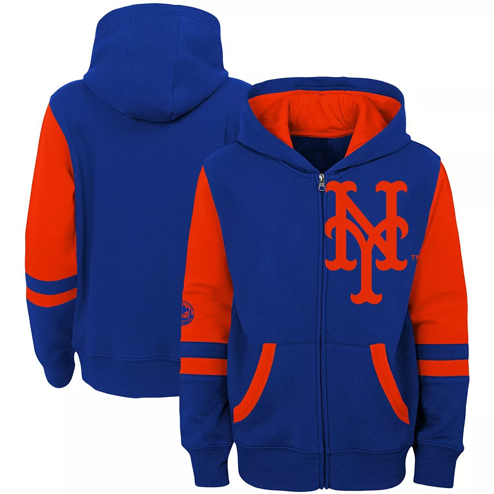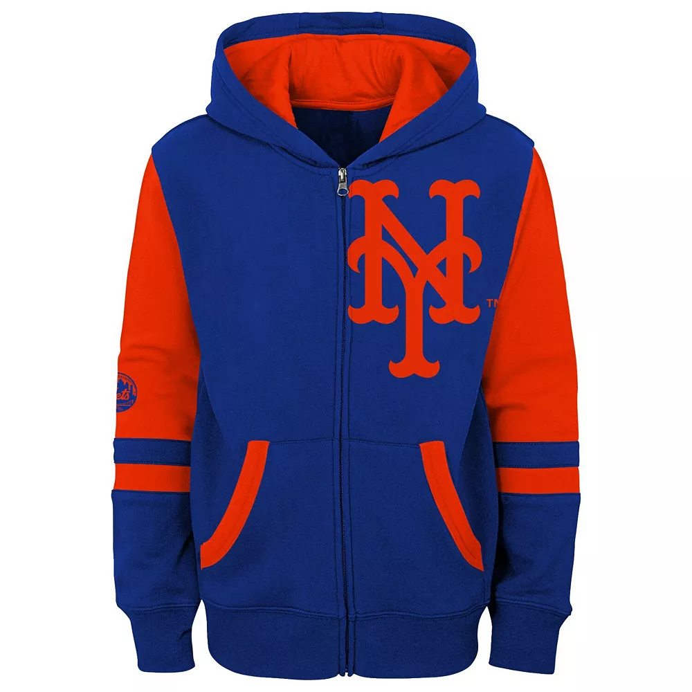 Whether in the stadium or hanging at home, this full-zip jacket is just what your little one needs to rep their New York Mets. While the lightweight fabric brings comfort, the hood and pockets bring convenient coverage and warmth. Best of all, the dashing New York Mets graphics let your youngster show their pride in style.