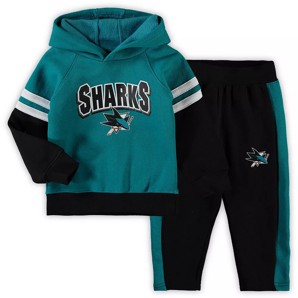 Give your kiddo the perfect, game-ready look that fully showcases their San Jose Sharks enthusiasm with this Miracle On Ice Hoodie and Pants set. Both pieces feature crisp San Jose Sharks graphics and a team-inspired colorway, so everyone will know which side they’re cheering for. The pullover hoodie is also constructed with raglan sleeves, which provide a more comfortable wear than traditional sleeves.