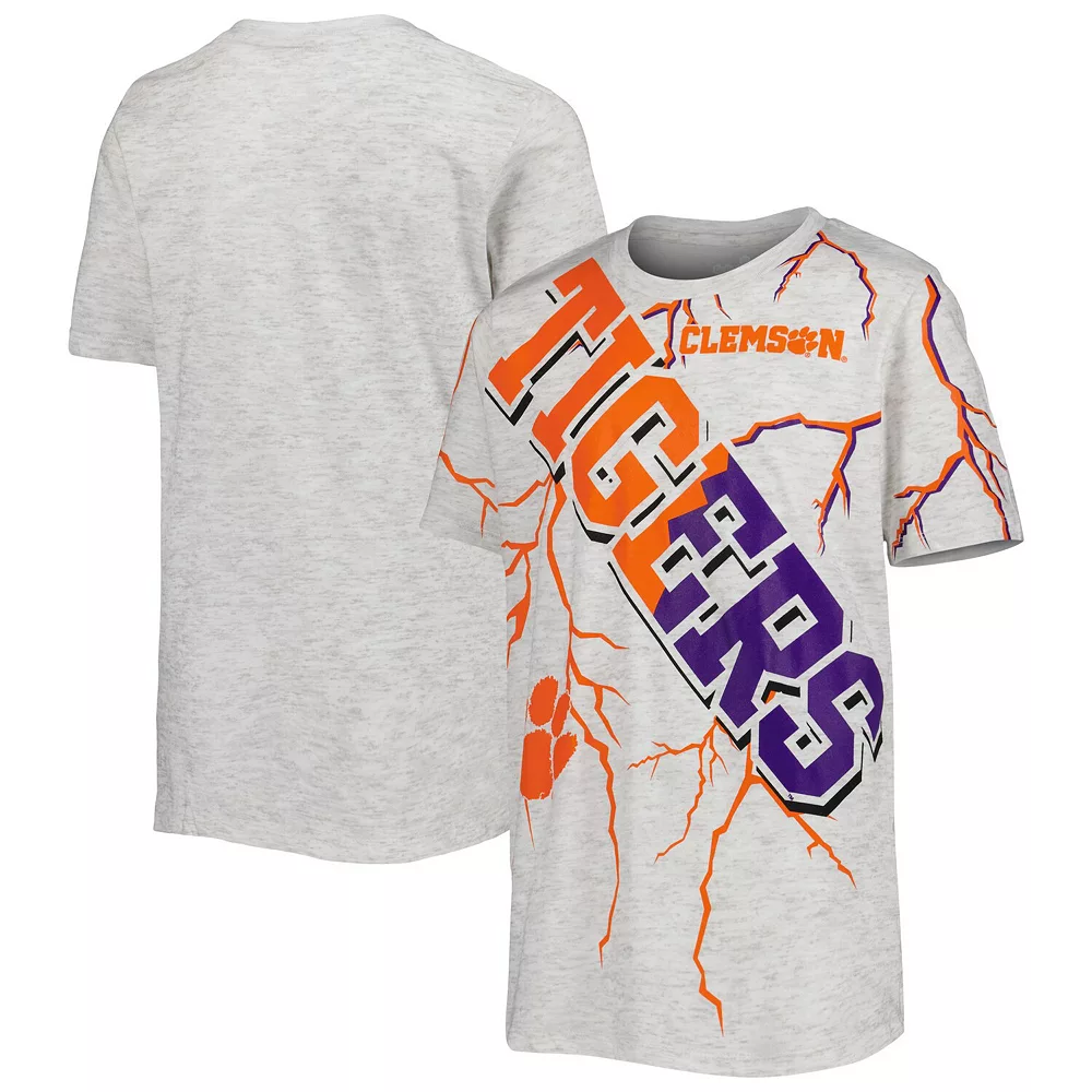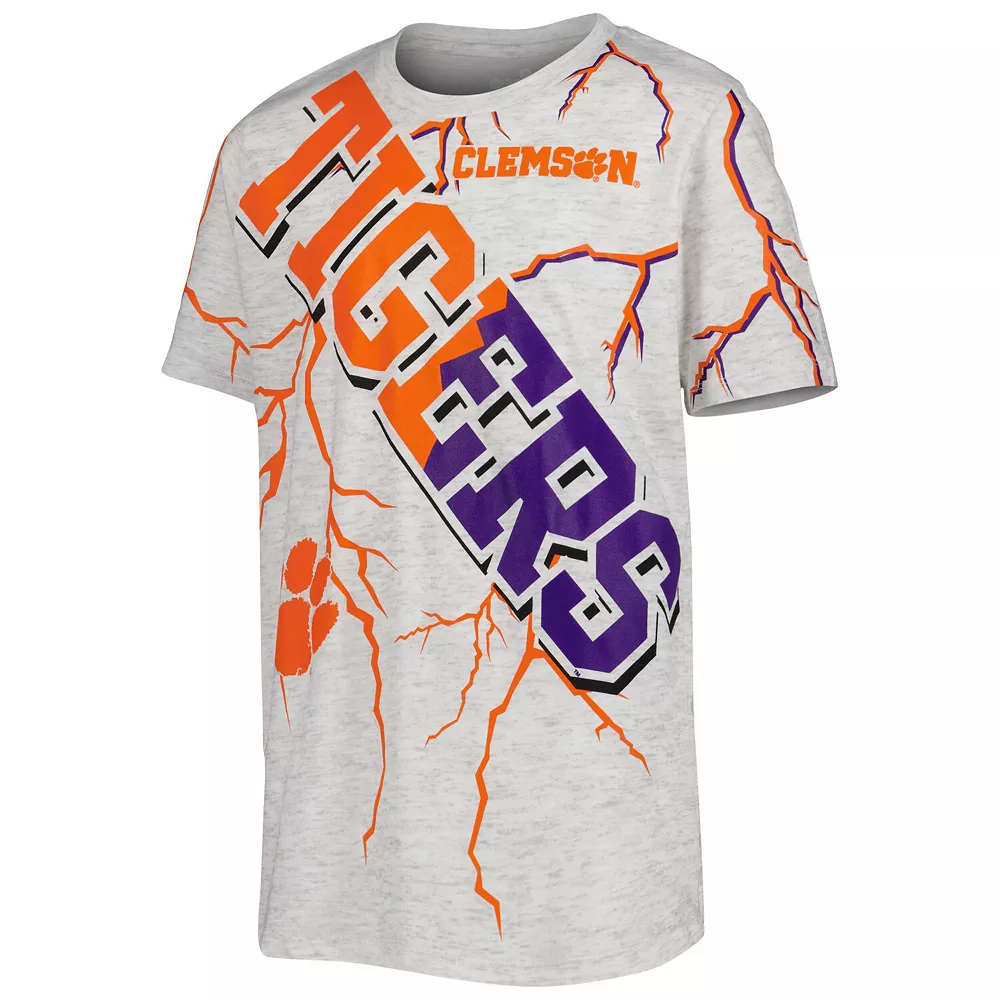 Build on your young fan’s Clemson Tigers spirit by grabbing them this Highlight T-shirt. The soft fabric and oversized fit provide them with an all-day comfortable feel. Best of all, the lightning print graphics with Clemson Tigers details make for an eye-catching piece of fan gear.