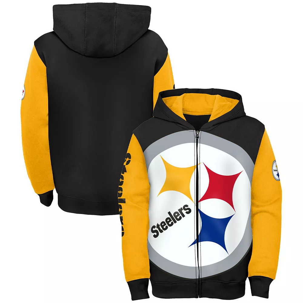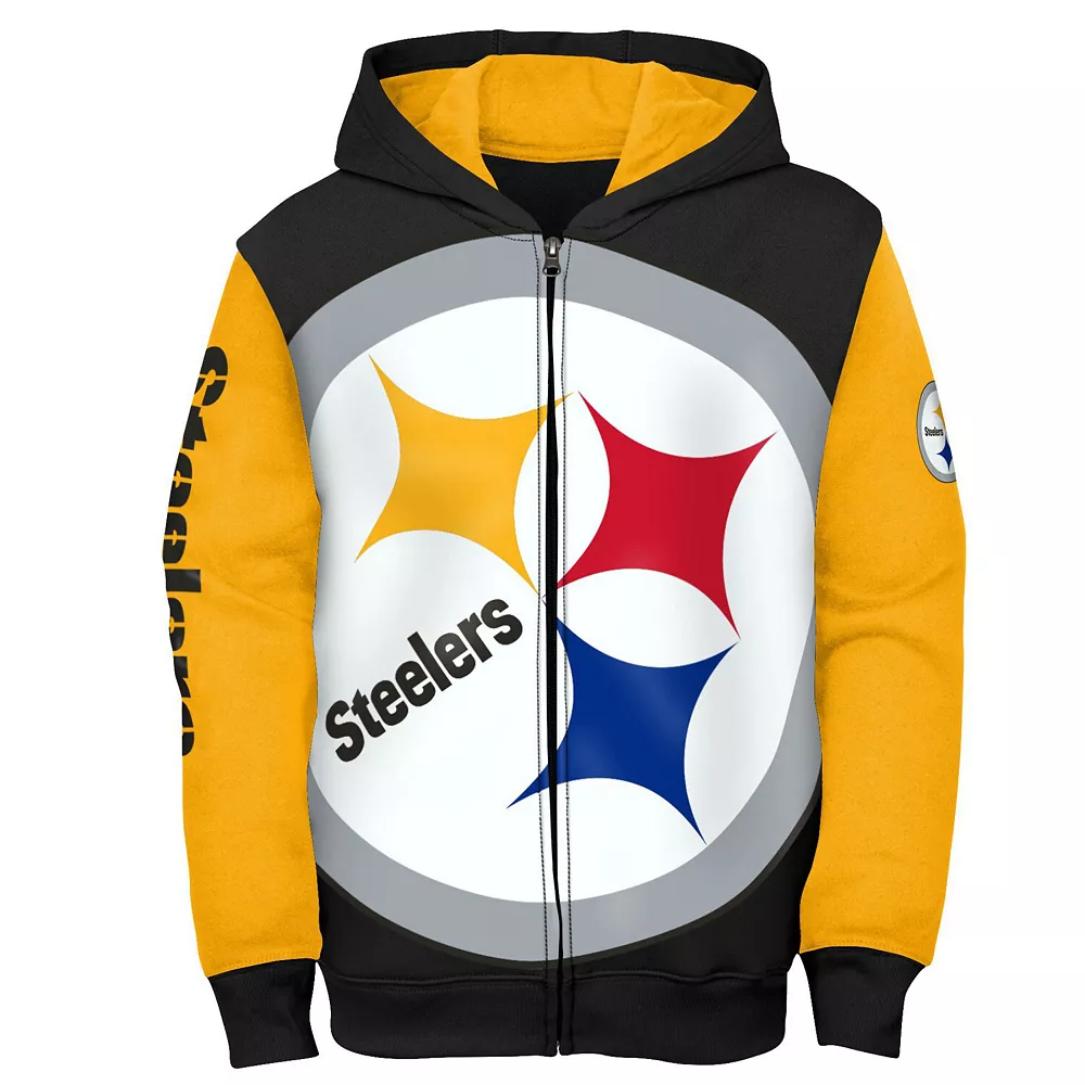 Bring attention to budding Pittsburgh Steelers fandom with this Poster Board hoodie. An emphatic team logo covers the front, while the full-zip closure helps mask chilly weather. There’s no better way for your kiddo to display their Pittsburgh Steelers affection than with this cozy midweight jacket.