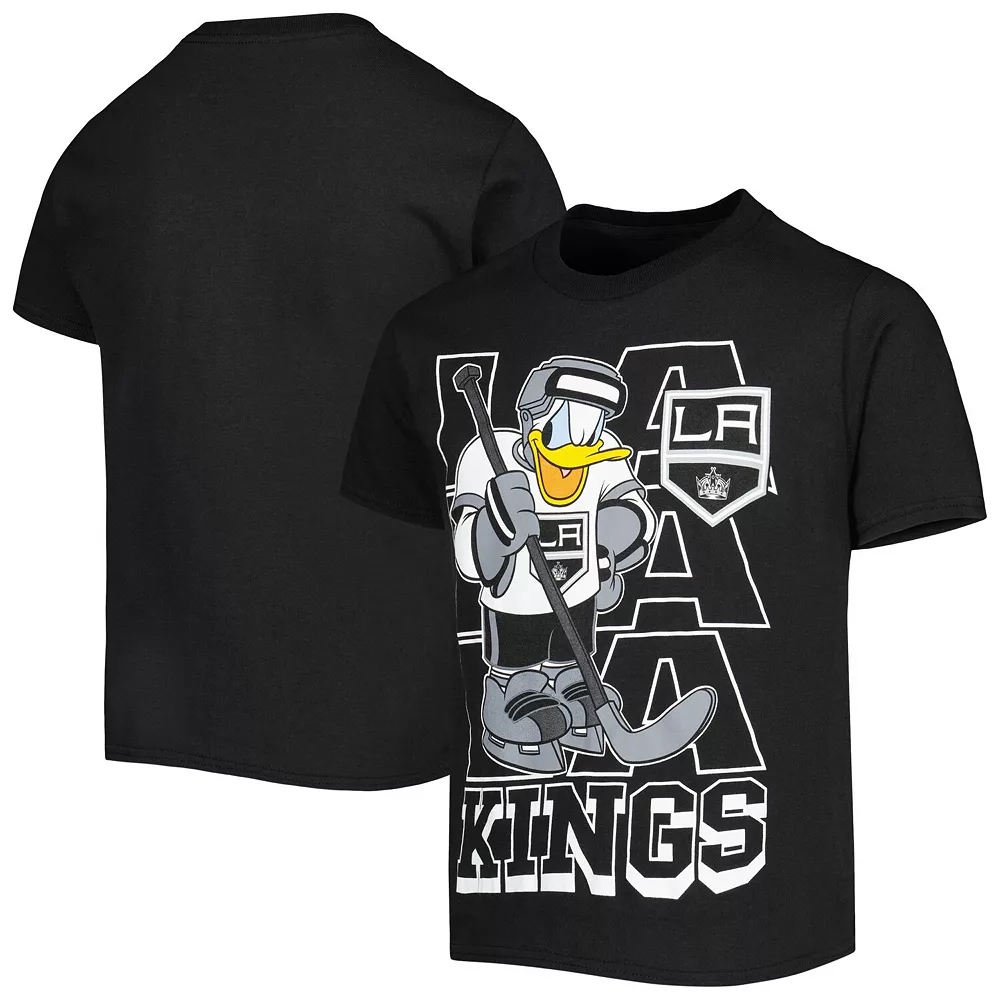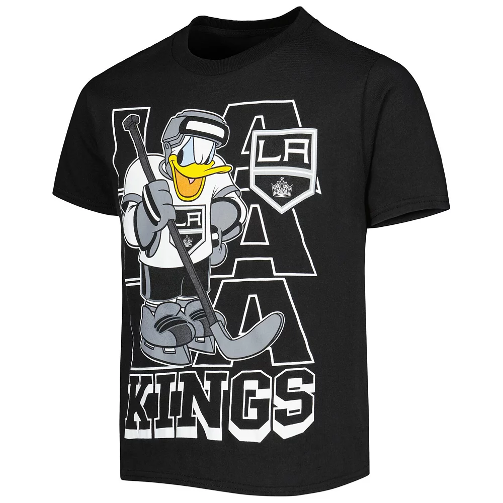 Gear up your young fan with something as magical as the Los Angeles Kings by grabbing this Disney Three-Peat T-shirt. It offers a lightweight and comfortable design so they can stay comfortable as they cheer on the squad. Plus, it features spirited Los Angeles Kings and Donald Duck graphics across the chest so there will be no doubt as to who their favorite NHL team and Disney character is.