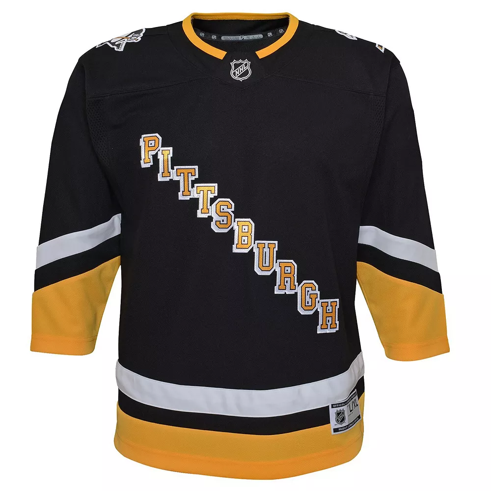 Help your young fan show everyone how proud they are to be a Pittsburgh Penguins fan when you grab them this 2021/22 Alternate Premier Jersey. Featuring crisp Pittsburgh Penguins graphics, this will be the go-to jersey for your kiddo on game day! Add this sweet gear to their Pittsburgh Penguins collection today.