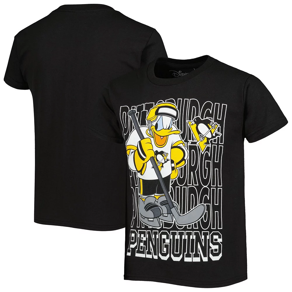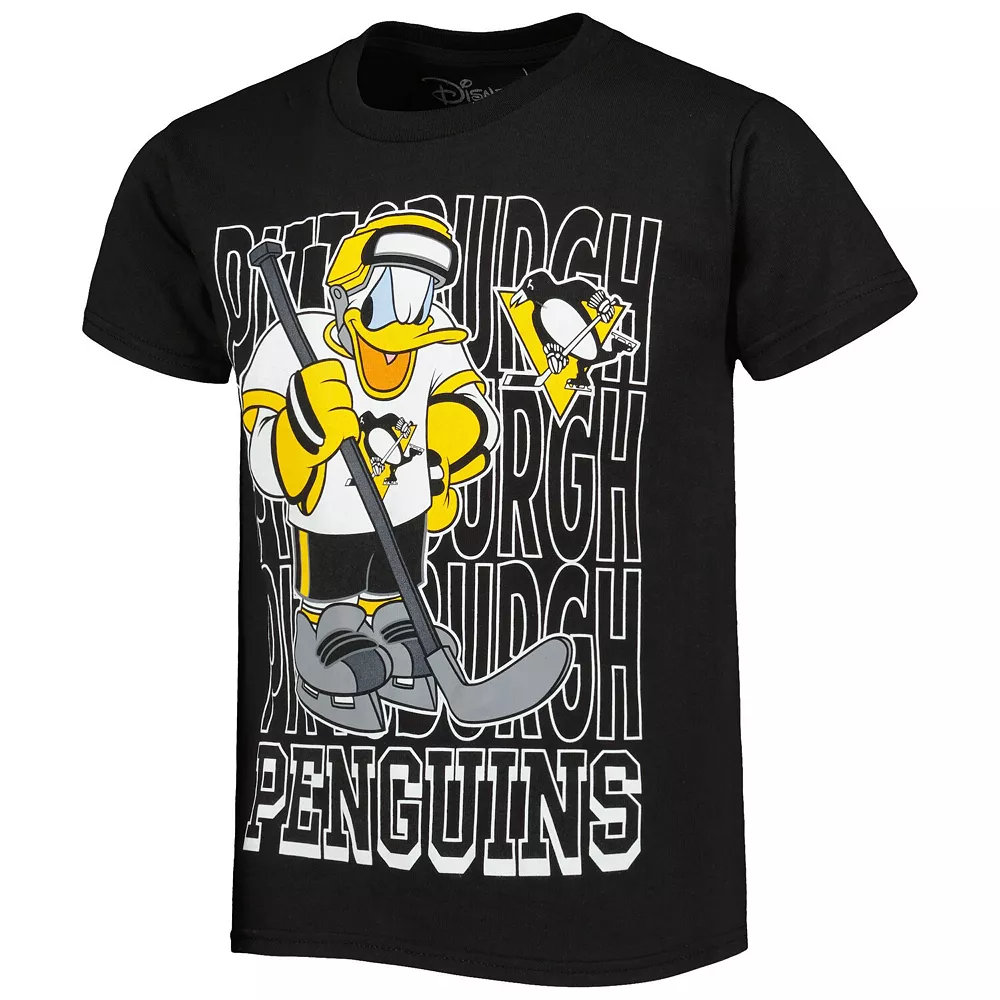 Gear up your young fan with something as magical as the Pittsburgh Penguins by grabbing this Disney Three-Peat T-shirt. It offers a lightweight and comfortable design so they can stay comfortable as they cheer on the squad. Plus, it features spirited Pittsburgh Penguins and Donald Duck graphics across the chest so there will be no doubt as to who their favorite NHL team and Disney character is.
