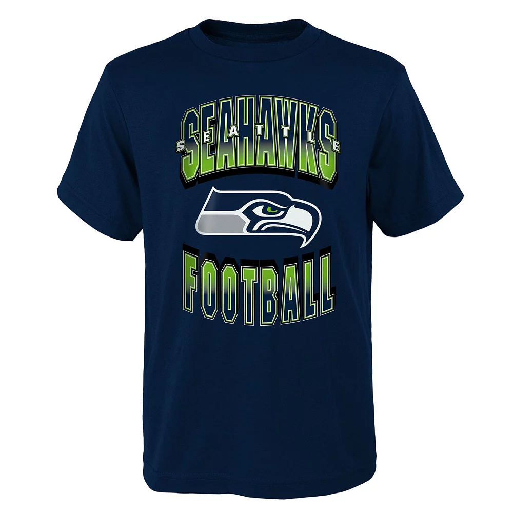 Ensure your young Seattle Seahawks fan is always ready to showcase who they love on game day with this Forward Progress T-shirt. It features multiple Seattle Seahawks graphics and comes in a primary team color, leaving no doubt about who your kiddo supports. Plus, the cotton fabric offers that familiar comfy tee feel.