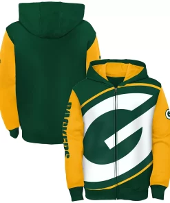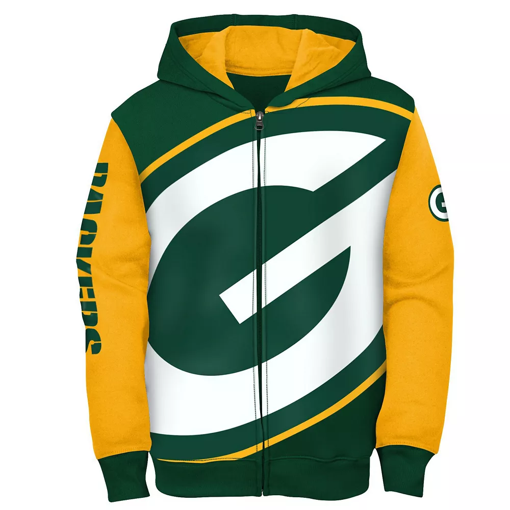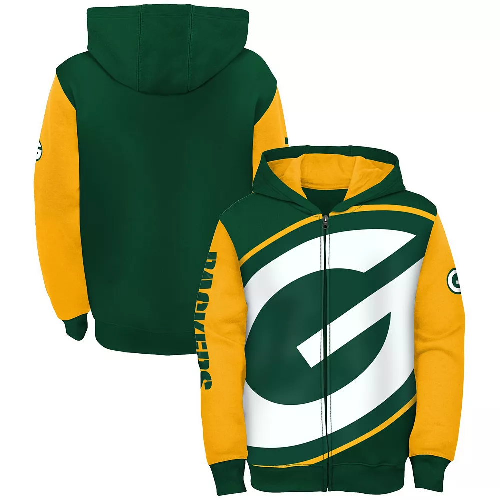 Bring attention to budding Green Bay Packers fandom with this Poster Board hoodie. An emphatic team logo covers the front, while the full-zip closure helps mask chilly weather. There’s no better way for your kiddo to display their Green Bay Packers affection than with this cozy midweight jacket.