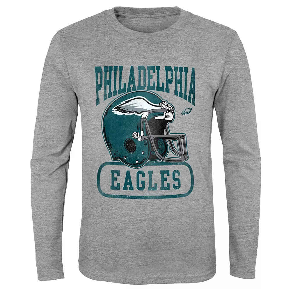 Upgrade your kiddo’s game day wardrobe with this Philadelphia Eagles Head-to-Head T-shirt. This tee features a classic wordmark design with the team helmet displayed prominently on the front. The soft cotton gear makes for a comfortable choice for cheering the Philadelphia Eagles to victory.