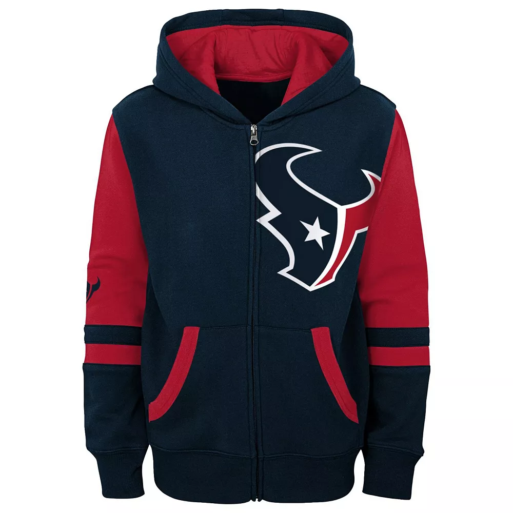 Your kiddo loves to watch the Houston Texans and is quickly becoming the team’s biggest supporter. Help your youngster reach that level of devotion, even if it gets chilly outside, by getting this Stadium full-zip hoodie. The bold Houston Texans graphics will help highlight your young fan’s blossoming loyalty to the team.