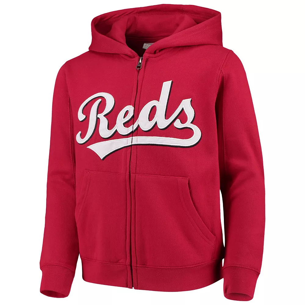 The passion your young Cincinnati Reds fan feels for the team will be abundantly clear when they rock this riveting Wordmark full-zip hoodie!