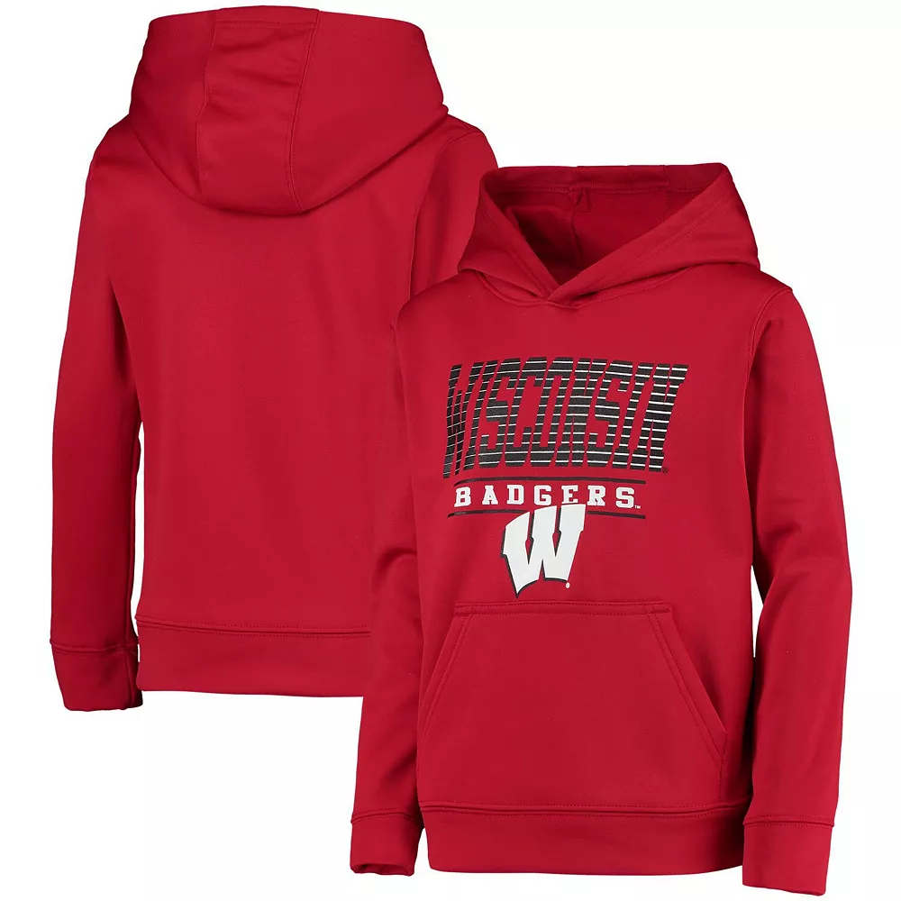 Make Wisconsin Badgers fandom part of your young fan’s cooler-weather wardrobe with this Fast pullover hoodie. It features vivid Wisconsin Badgers graphics printed on soft fabric in the team’s primary color. The hood and pouch pocket also provide additional warmth.