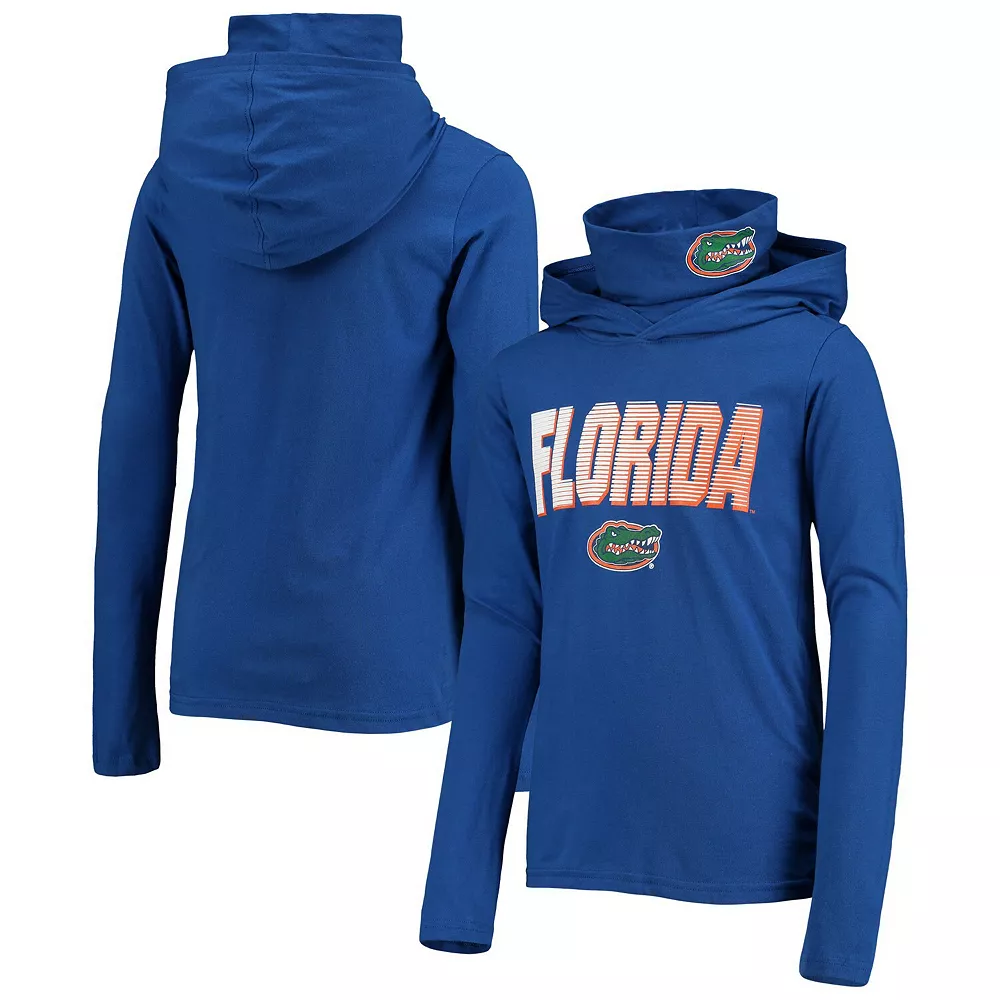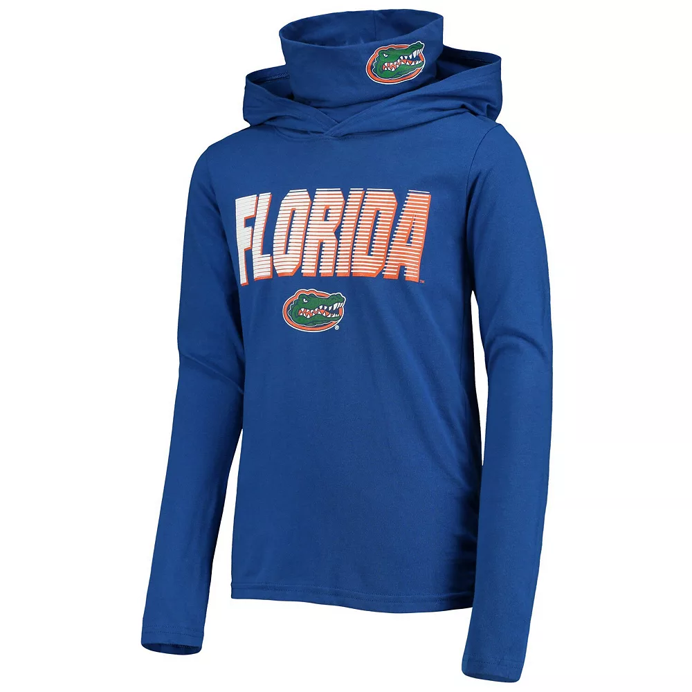 Give your young fan’s Florida Gators wardrobe a boost with this Blocker T-shirt. It’s crafted from comfortable cotton and features a hood for those slightly chilly days. It comes complete with bold Florida Gators graphics and a sewn-in neck gaiter so they can stay safe while they show off their loyalty.