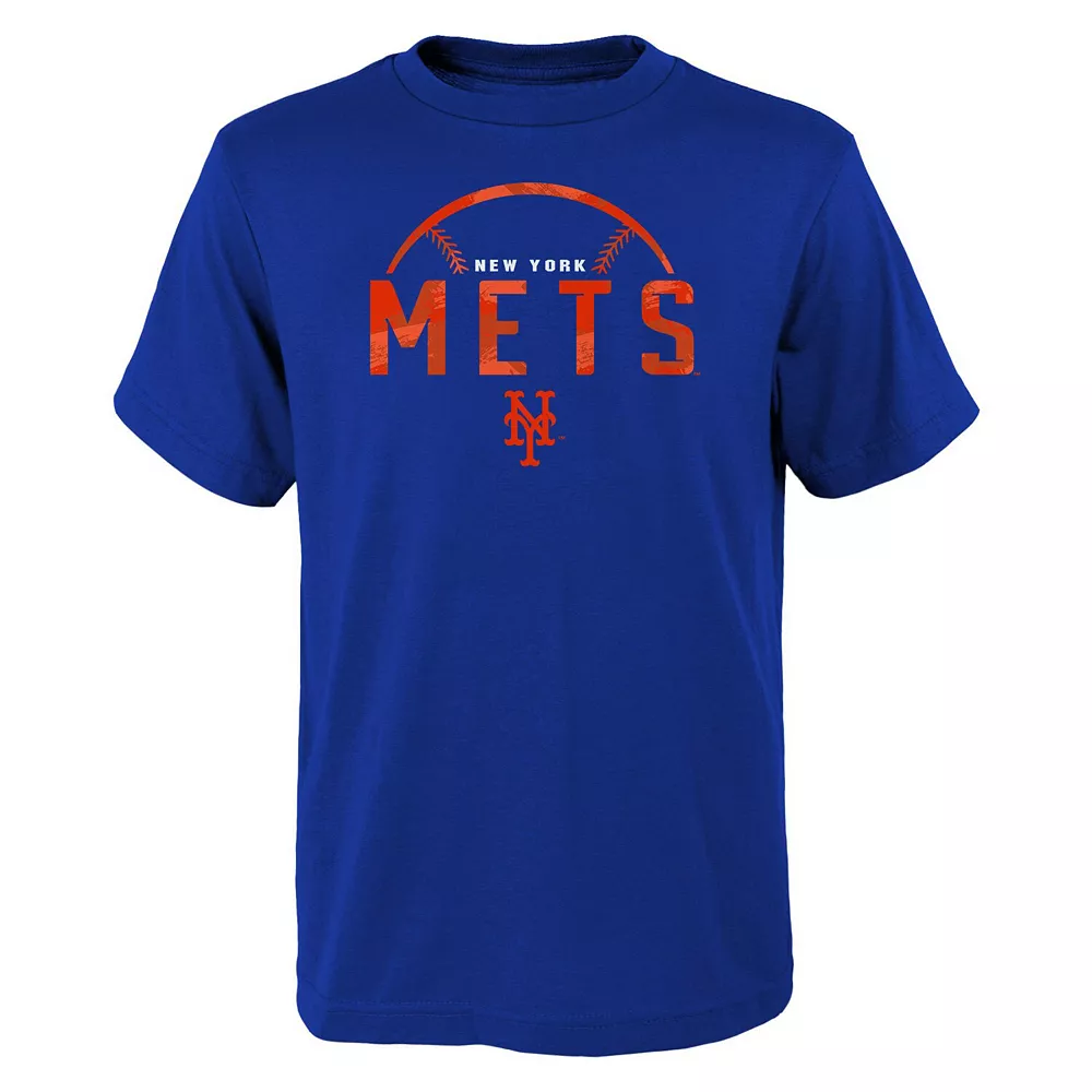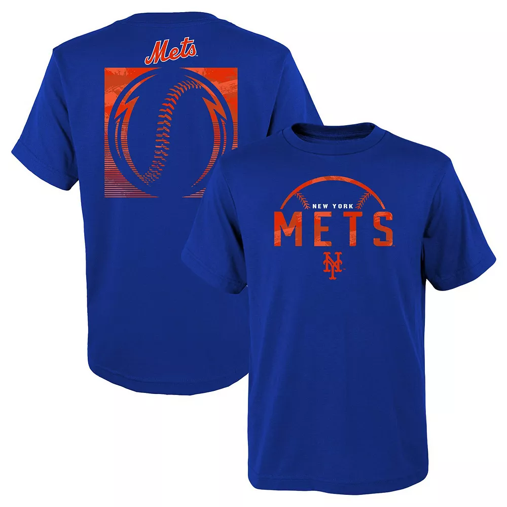 Help your kiddo elevate their New York Mets gear with this Blitz Ball T-shirt. It features a bold team logo and wordmark on the front, along with a stylized baseball graphic on the back that lets everyone know their fandom is strong. Plus, the classic crew neck makes this tee easy and comfortable to pair with their favorite cap or other team-inspired accessories.