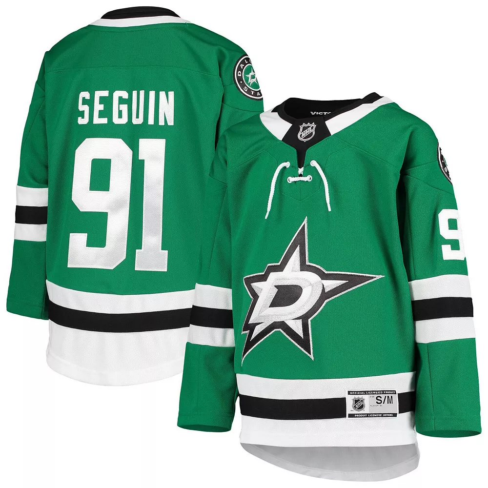 Allow your kiddo to replicate the look of their favorite Dallas Stars player by grabbing this Tyler Seguin Premier Player jersey. It offers a jersey-inspired design as well as mesh underarm fabric for breathability. With its authentic Dallas Stars colors and Tyler Seguin graphics, your youngster will look ready to make their own game-winning plays as they cheer on the team to another victory.